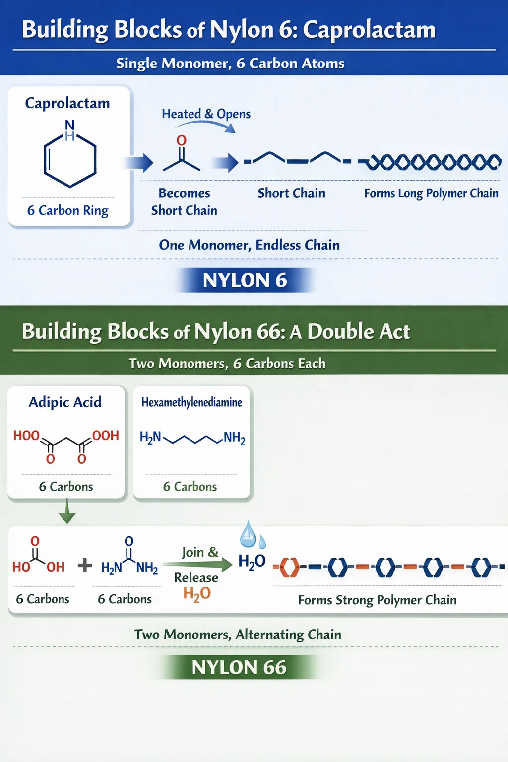 ชื่อไนลอนนั้นเป็นความลับของวัตถุดิบจริงๆ สิ่งที่เรียกว่า "โมโนเมอร์" เป็นส่วนประกอบพื้นฐานที่ใช้ในการสร้างโซ่พลาสติกขนาดยาวเหล่านี้