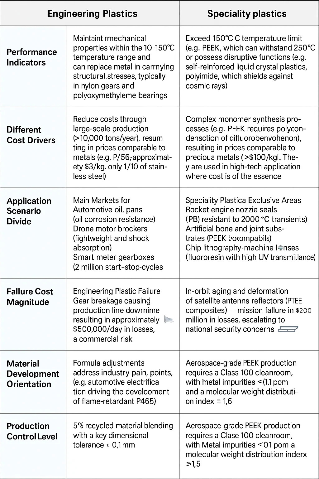 ความแตกต่างที่สําคัญระหว่างพลาสติกวิศวกรรมและพลาสติกชนิดพิเศษคือ: