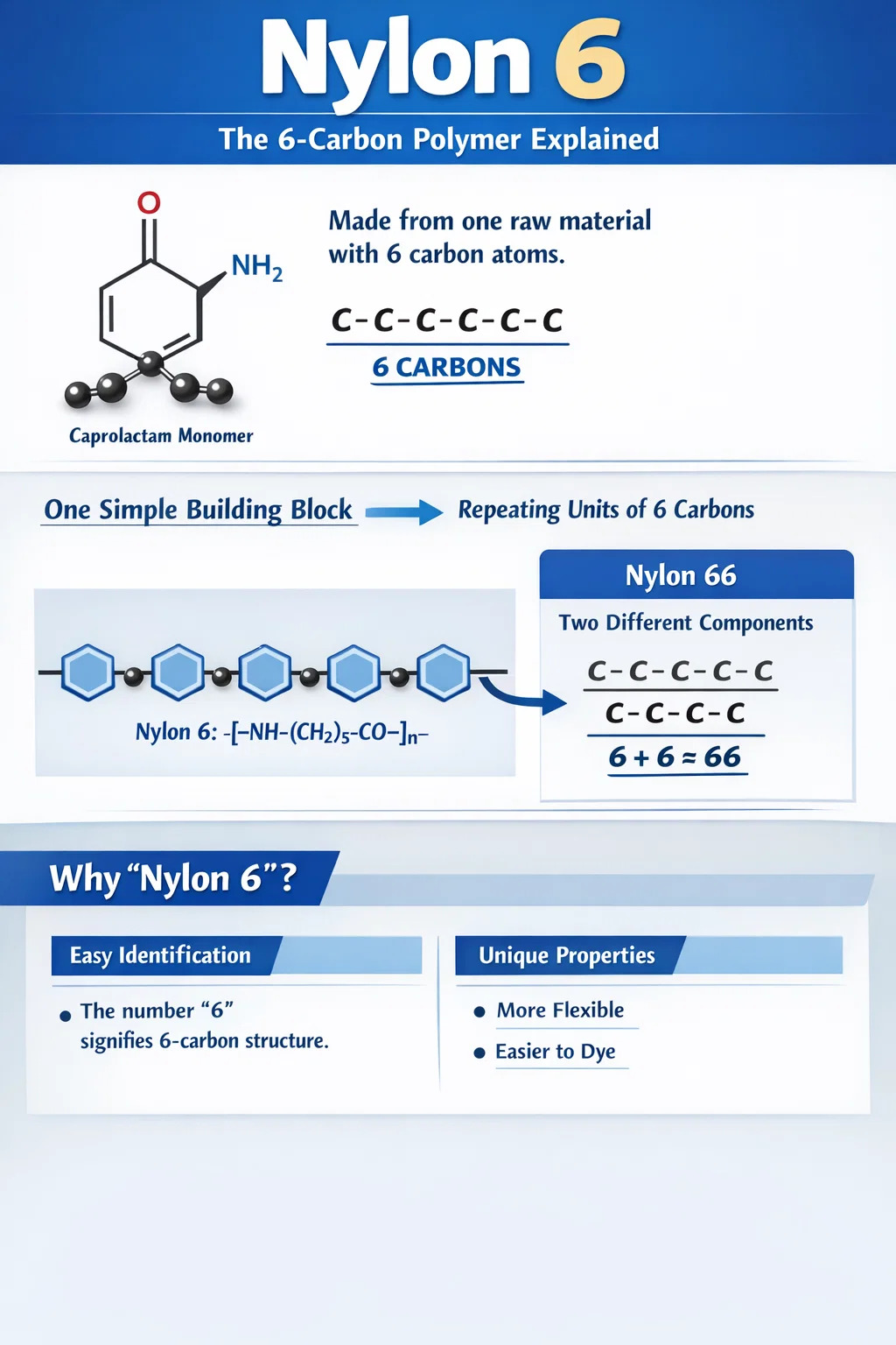ตรรกะในการตั้งชื่อ: เนื่องจากมีเพียงอะตอมของคาร์บอน 6 อะตอมเท่านั้นที่เกี่ยวข้องกับการสร้างสายโซ่ยาวทั้งหมด เพื่อความสะดวกและง่ายต่อการจดจำ นักวิทยาศาสตร์และผู้ผลิตจึงเรียกมันว่า "ไนลอน 6"
